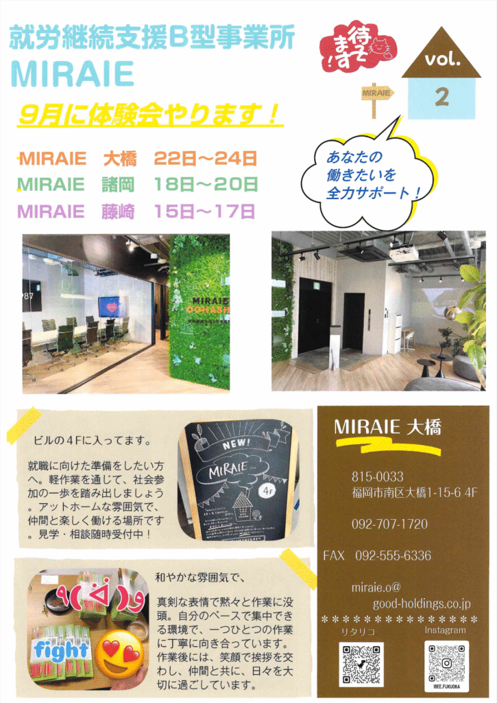 MIRAIE vol.2 2025 9/01 広報誌 広報誌 MIRAIE vol.1 HPを公開いたしました。 関連記事 MIRAIE vol.5 2025年12月1日 MIRAIE vol.4 2025年11月1日 MIRAIE vol.3 2025年10月1日 MIRAIE vol.1 2025年8月1日 i Bee FUKUOKA vol.27 2025年7月1日